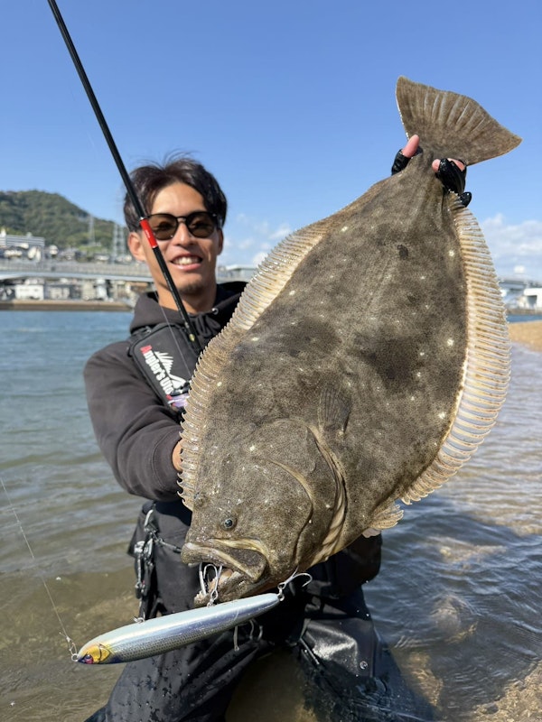 同タイミングではモニターの吉岡くんが良型のヒラメをキャッチ!!