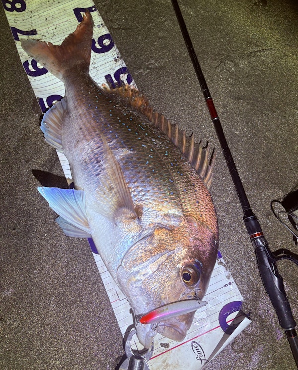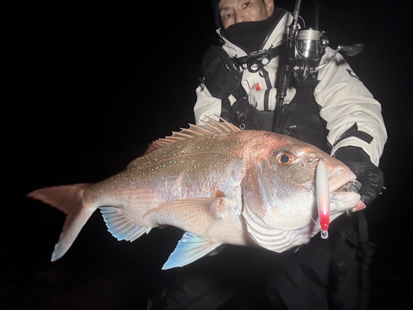 テスト中には、ゴロタサーフで5kgの真鯛もキャッチしていますが、