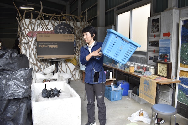 海岸の清掃活動が終わった後は、海洋ごみを回収し、分別し、粉砕しているというクリーンセンターを見学しました。