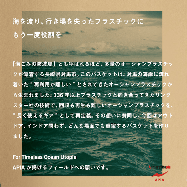 今回、アピアは「対馬オーシャンプラスチックバスケット」をリリースしました。これは、長崎県対馬市に漂着した「海ごみ」を原料の一部に使用したプロダクトです。