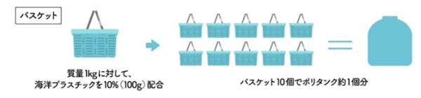 そうして買い取った企業さんが漂着プラスチックをペレットに変え、リングスター社のようなメーカーさんがペレットを混ぜた製品を作ることに成功できたことで、このバスケットが出来上がったのです。