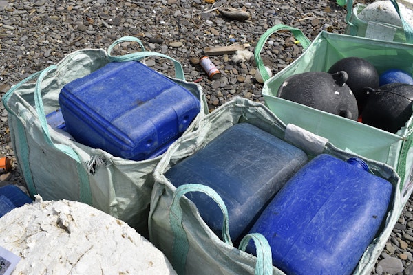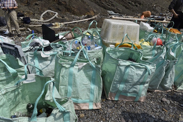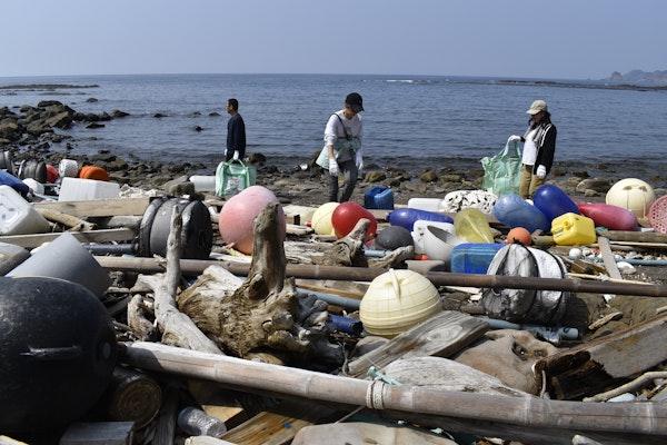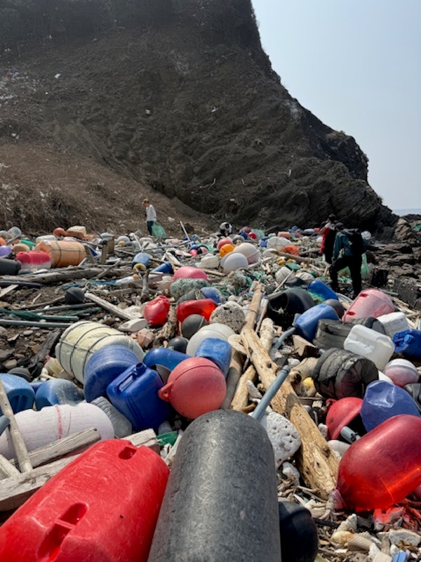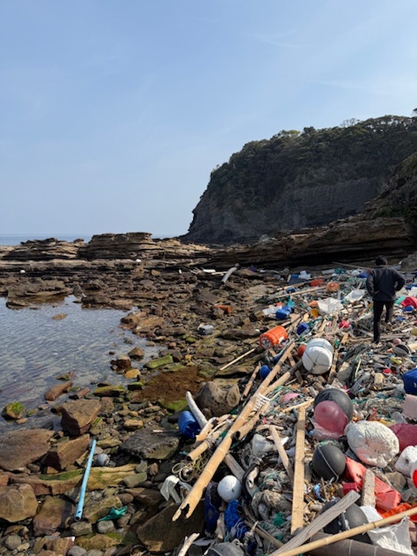 大きなブイ、漁網の切れ端、ペットボトル、ポリタンク、流木・・・