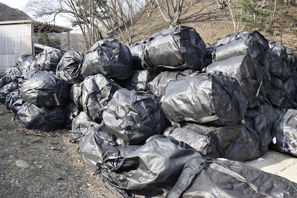 この袋の中には再生可能な破砕プラスチックが330㎏も入っています。