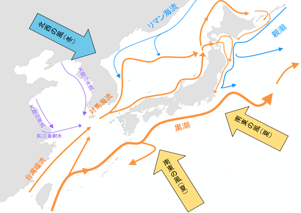何故これだけのゴミが対馬に集まるのか、それは地理的な要因が大きいのですが、対馬は日本海の入り口に位置しています。