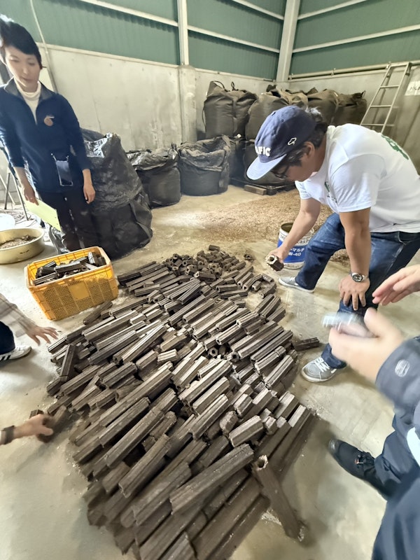 これは流木とプラスチック系のごみを混ぜて、破砕、圧縮し、燃料に変えたもので、“加炭材(かたんざい)”と呼ばれ、燃料として石炭の代わりになることができるそうです。