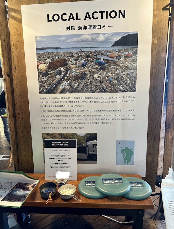 万博会場では対馬の海洋プラスチックを使ったリングスター社のバスケットが買い物かごとして各土産店で採用されました。そして万博終了後には廃棄されることなく、パタゴニアの全国ストアで再利用されることになりました。