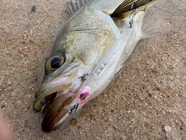 クロス~ダウンの強い流速下に入っても暴れすぎず、シーバスへのバイトチャンスを維持しながらしっかりと引いてこられる点が魅力です。