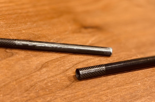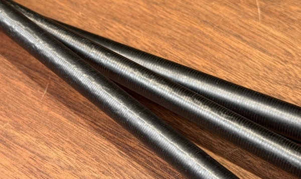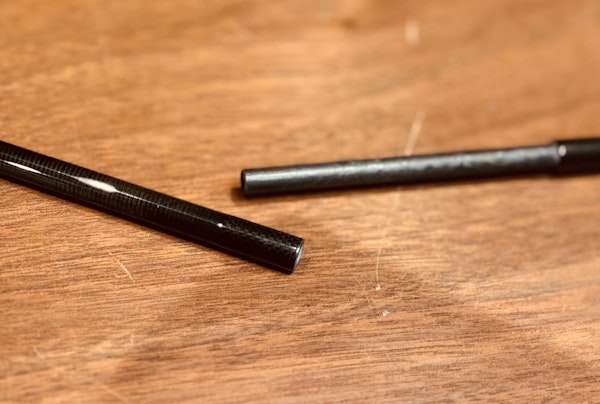 「NANO JOINT」を採用することとなり、アピアロッドでのジョイント問題(緩みや、ジョイントが突っ張ることによる折れ)は大幅に改善されました。その中には印籠継ぎだけではなく、高い強度が必要なモデルには並継ぎの「NANO JOINT」も作成しました。ここで気づいたのは並継ぎの「NANO JOINT」の精度の高さです。アピアのジョイントのテーパー差は2〜5/1000という驚きの精度で削っていますが(高級ロッドでも1/100mmが多い)、中でも並継ぎで削った際のブランク接地面は広く、ずれない、抜けないという理想的なジョイントができるようになりました。わたしは今まで、高級ロッド=印籠継ぎという常識に疑問すら持っていなかったのですが、この出来事があってから更にジョイントを研究していきました。前のマガジンでも触れましたが、並継ぎは強度が高く、印籠継ぎよりも軽量で、重心も手前に寄りやすいという特徴があります。ベンディングカーブのきれいさは印籠継ぎの特徴ではありますが、NANO JOINTの柔軟性は正直従来の印籠継ぎを超えています。あとはバット部が太くなりやすいという欠点を改良することで、現在のアピアロッドはすべて並継ぎの「NANO JOINT」となりました。「NANO JOINT」ありきですが、これがわたしの考える現段階でのジョイントの最適解です。