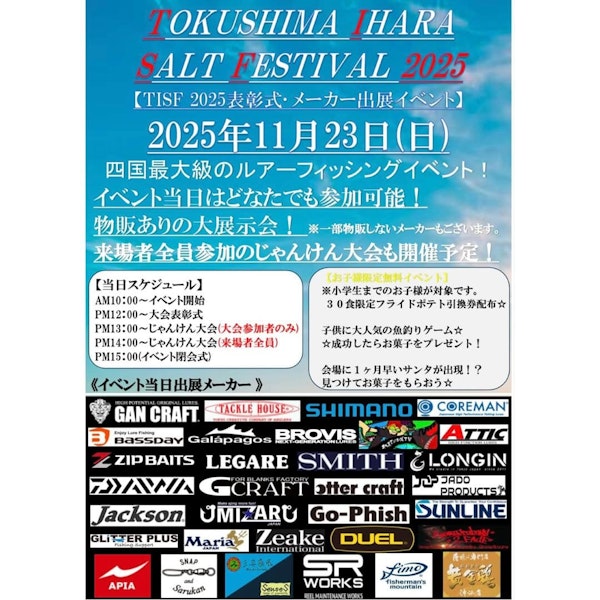 11月23日(日)徳島県で開催される『TISF2025 「TOKUSHIMA IHARA SALT FESTIVAL2025」』にブース出展いたします。