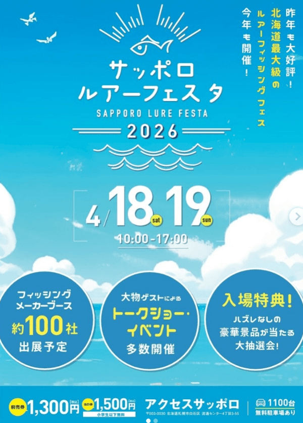 4月18日(土)・19日(日)、アクセスサッポロにて開催される『サッポロルアーフェスタ2026』に、アピアブースを出展いたします。