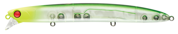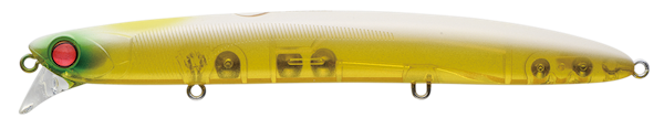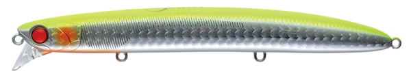 ラムタラのタングステンウェイトチューンモデル。アクションを若干押さえて、潜行深度も60cmに設計。ラムタラが表層を流す設計に対し、ややレンジが入る仕様のバデルはバイトをフックアップに持ち込みやすいというメリットも。流速がある場面や場所ではバデルの実績が高いという特徴がある。大潮~中潮ではバデル、小潮や若潮などの潮回りではラムタラ130との使い分けも良。