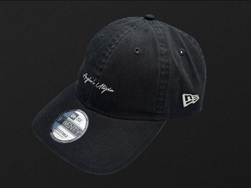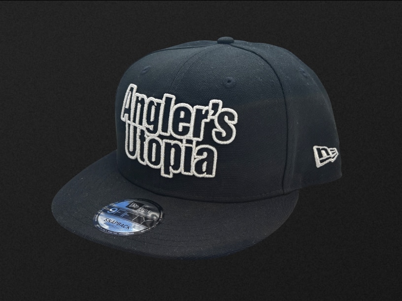 NEW ERAのベーシックモデル9FIFTYのスナップバックキャップ。「Angler's Utopia」ロゴをシルバーで仕上げたAPIAらしいデザイン。