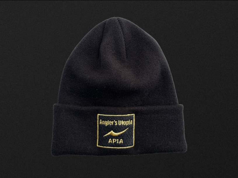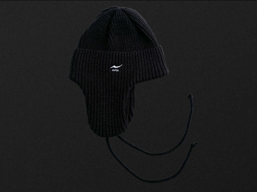 左サイドにAPIAロゴ、右サイドにNEW ERAロゴを刺繍。イヤーフラップが特徴のニットキャップ。
